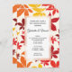 Bjud in gästerna att fira det nygifta brudparet på morgonen efter deras höftsmässa i september, oktober eller november med den naturliga inbjudan till efterbröllopsbrunch med ljust höstlöv. Denna eleganta anpassade höstinbjudan till efterbröllopsfrukost eller lunch visar röda, gula och orange höstlöv mot vit bakgrund.