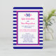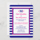 Denna efterfestinbjudan efter bröllop har ett nautiskt tema i varmt rosa, marinblått och vitt. Inbjudans detaljer är tryckta i varmt rosa och marinblått på vit bakgrund med marinblå och rosa kant och en randig bakgrund i marinblått och vitt. Era monogram är placerade tydligt högst upp med ert efternamnsmonogram och individuella initialmonogram. Detta är en fin nautisk randig efterfestinbjudan efter bröllop. Copyright henishouseofpaper