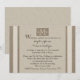 Denna inbjudan till efterbröllopsfest har ett pergamentpapper som mittpunkt med en burlapinsats som innehåller din efternamnsinitial samt era förnamnsinitialer på vardera sidan. På båda sidor om pergamentpappret finns en tanfärgad burlap med en ljusare rand tvärs igenom. Alla detaljer till efterbröllopsfesten kan anpassas på denna design, inklusive när och var ni gifte er. Ett underbart sätt att inbjuda era gäster till en efterbröllopsfest. Copyright henishouseofpaper