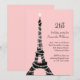 Piggande twinkle ljus accent på Eiffel Torn på den här parisiska inspirerade födelsedagsinbjudningen.
