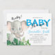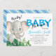Baby Shower-inbjudan, Boy Elephant-inbjudan En söt baby-elefant personlig baby-gåva till en liten pojke. Skapa och anpassa din blåa, svarta och vita inbjudan till babyådan snabbt. Klicka på knappen "Anpassa den!" om du vill ändra texten storlekt, färg, font stil med mera!