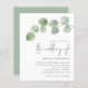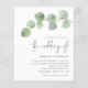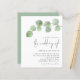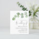 Ett ekonomiskt alternativ i BUDGET på en mindre storlek på 4,5 x 5,6 tum (110 lbs vikt), som är av samma tjocklek som ett vykort (är dock inte lämpligt för använda som vykort). OBSERVERA ATT DET FINNS EN inbjudan per lakan. Budgeterad Elegant Eucalyptus Bröllop. Ett gren av grönt eucalyptus lämnar springa från den lämnat sidan ovanför ord som är i linje med högerna. Bröllop av är i ett handskript med stil-set och resten av texten kan du enkelt anpassa. En samordnande grönt är på baksidan.