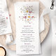 En vackert designad bröllop-meny med känsliga vattenfärgblommor i mjuka pastelltoner. Elegantens typografi och minimalistisk utformning skapar en sofistikerad och romantisk känsla, perfekt för alla bröllopsmottagningar. Fullt anpassade med dina utvalda diskar, namn och datum för att komplettera din speciella dag.