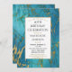 En inbjudan från elegant födelsedagsfest med rik blå grönt marmor som är lår med guld och guld ram. Perfekt för delstensfödelsedagar som 18:e 20:e 30:e 35en 40:e 45:e 50:e 60:e 65en 70:e 80:e 75:e-90:e 95:e och 100 ...eller vilken ålder som helst!