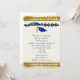Inbjudan till studentfest av Elegant, utförd med en krämfärgad färgad och grafik med guld-tonsbelagd design, överst och grund i inbjudan. Grafisk text i Guld, på en blå och guld-banderoll, Klass av, med året i guld-tonstexten anpassningsbar. Ett blått och guld student fällpapp dekorerar under banderollen. Anpassa all text till kostym efter studenten bash.