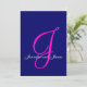 Tonblått och Shock rosa - Monogram för inbjudan till Elegant bröllop av Elke Clarke ©. Anpassa med ditt monogram, namn och bröllop färger. Lägg till all bröllop-information på kortets baksida med hjälp av Zazzles anvisningar på användan. Kommer med tomt vitt kuvert.