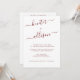 Den romantiska minimalistiska designen har fin och elegant typografi på en vit bakgrund med ett rent och enkelt utseende. Spara papper genom att inkludera uppgifterna på baksidan av bröllopsinbjudan i stället för på ett separat djurutrymmeskort. Ta även med OSA-informationen om din gäst svarar elektroniskt (valfritt). Du kan redigera alla aspekter av den här designen (teckensnitt, storlek text eller blommigtens accenter flyttat/tas bort) för att passa dina behov. Kontakta mig om du behöver hjälp med den här designen.