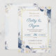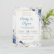 Den här bröllopsinbjudan har en vacker blommigt och utformning. Den är en tidlös elfenbenstorn med mjuka blå blommigtar och elegant guld accents. De ömtåliga blåblommorna kompletteras med subtila detaljer om guld, som skapar en sofistikerad och romantisk atmosfär. Perfekt för par som söker en blandning av klassisk charm och modern elegans för sin speciella dag.