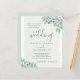 Den prisvärda bröllop-utformningen har söt målad, vattenfärgseukalyptus grenar på en vattenfärgsförändrad grönt-bakgrund. Klicka på knappen Anpassa om du vill ha mer flexibilitet när du ändrar texten. Det finns variationer i denna utformning, olika pappra typer och samordnade produkter i vår butik, zazzle.com/store/doodlelulu. Kontakta oss om du behöver den här designen för en specifik produkt för att skapa ditt eget unika matchande objekt! Tack så mycket för att du har sett en DoodleLulu-design med två kryp.