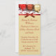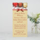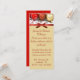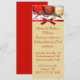 Vackra julfestens inbjudan, gjord på ett långt smala kort lagrar, med ett foto av röda prydnadsföremål och prydnadsföremål från guld julen i boll högst upp på inbjudningarna. En röd platta tittar band och bågar som ett gräns mellan det övre och det blek textrutan med gyllene färgad. Anpassa texten till kostym som du behöver.