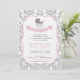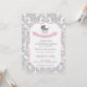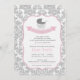 Elegant Damask & Pram Baby Shower-inbjudan med ett schema för rosa och grått färg