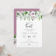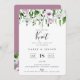 Vi har bundit knuten till knuten, till utlysningen av elopationen och till mottagningsinbjudan. Kortet har elegantens blommigt i chicens nyans, vitt och grönt. Du kan anpassa färg med baksidan, som visas i Mauve orchid. Modern typografi och chic.