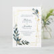 Inbjudan till OSA kort i elegant bröllop har en typografisk snyggt med ett fantastiskt grönt löv med guld ram-utformning i ett system för havets grönt och grått färg. Temat färg bär på kortets baksida med vit text. Det här biet på bröllop-kontoret är redot för dig att anpassa dig efter detaljerna på din speciella dag. En del av en ständigt växande samling.