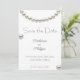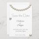 Vita Elegant bröllop Spara datuminbjudan med ett silver pärlhalsband i vattenfärg. Det är mycket enkelt att anpassa, med information om dina personuppgifter.