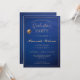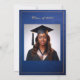 Det här är en inbjudan till snyggt blå och guld studentfest med elegant typografi och studentmössa. Här ingår anpassade fält för student, namn, skola, datum, plats, OSA och ett foto på baksidan, skapar perfekt för att fira en speciell prestation på ett sofistikerat sätt.