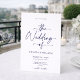 Den här förfinade inbjudan till vitt bröllop innehåller en elegant-skriptutformning i ett sofistikerat blått teckensnitt. Den skarpa vita bakgrunden skapar ett rent och tidlöst utseende, perfekt för en romantisk och snyggt bröllop. Anpassa den med dina detaljer för en skräddarsydd beröring. Idealisk för formella, klassiska och contemporary bröllop teman.