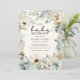 Den här eleganten boho blommigt babyduschinbjudan har vackra handmålade vattenfärgade dammiga löv och bär, krämanemonblommor, sage greenery och pinekonomier som arrangeras som en snyggt ram på ett elfenben | gräddbakgrund. Sök efter matchande objekt i Winter Dusty Blue Blommigt Collection.