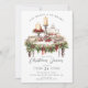 Vår julmiddagsinbjudan innehåller en elegant helgdag middag i ställe och grönt i garland med texten "ät, drick och var god". Inbjudan är enkel och elegant, med vit bakgrund och svart text.