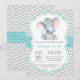 Inbjudan till Elephant Baby Shower Aqua och Grått