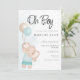 Den här babyduschinbjudan innehåller en vattenfärgsfärgad elefant- och vattenfärgballonger. "Oh Boy" är i ett vackert skript och dina duschdetaljer finns i ett redo för snyggt typografi för att vara personlig. Korten går tillbaka till en blå stjärna mönster. En perfekt för skymning eller sprinkling.
