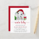 Den finstilta julens julhelg är en ren liten duschinbjudan till flicka med "Santa Baby" i ett gult skript med snyggt, med slagord, en vattenfärg på en flicka-elefant som bär en julhatt med Julgran, en röd och grönt candy cane och presenter, mor till namn i elegant röd typografi och duschdetaljer i enkel modern typografi.