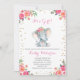 Cute och söt! Det är en inbjudan till en elefantbabydusch med blommigt och guld konetti, perfekt till din babydusch party.