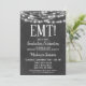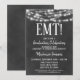 En inbjudan till EMT-studentfest med svart och vit roligt med ljusnande ljus överst.