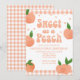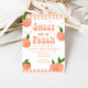 En söt persiko! Persika första födelsedag inbjudan med persikor och persikor gingham.