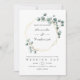 Trendig eucalyptus silver-dollar-bröllopsinbjudan med guld geometriskt ram.