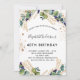 För en 40:e (eller någon ålder) födelsedagsfest. En vit bakgrund som dekorerats med eukalyptus greenery och gyllene löv. Dekorerad med faux golden glitter. Anpassa och lägg till information om namn och bröllop. Svart och guldfärgad färgad brev. Bakåt: vit bakgrund.