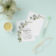 Budgetdekorerad Papper - Eucalyptus Greenery Succulent Botanical Watercolor Vår bröllop Inbjudningskort för möhippa på vit bakgrund - innehåller vacker manustypografi och elegant med modernt botaniskt löv och grön för att den speciella Briden ska vara firande.