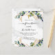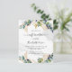 Marble print as bakgrund dekorerad med eukalyptus grey och gyllene löv. En gyllene kor. Personalisera och en namn och ceremonidetaljer.