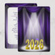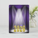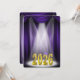 Inbjudan till examensceremoni för klassen 2026 i lila och guld med strålkastarljus.