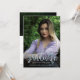Opal iriserande tryckbildskript. Avslappnad examensinbjudan, perfekt för examen från gymnasiet eller universitetet. Modern minimalistisk typografi, elegant och ledig "Examinerad" skrift. Fånga de speciella ögonblicken av tillväxt och glädje och ungdomlighet för evigt. Ladda upp ett porträttfoto av examen på framsidan och ett foto i liggande orientering samt relevanta detaljer om examensfesten på baksidan. Skuggar automatiskt de perfekta områdena på bilden.