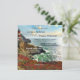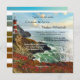 Bröllopinbjudan med en målning av ett fyr på ett klipp vid havet i vibrerande färg. Perfekt för en strand-, nautiska- eller destinationsbröllop. Den här inbjudan har en matchande OSA kort.