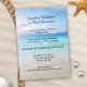 Ett inlägg eller en inbjudan efter bröllopsfesten med en modern målning av en strand på ljusa färger. Underbar för mottagning endast eller efter bröllop firande med strand eller resetema.