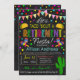 Bedårande "taco 'bout a" fiesta inbjudan till pensionsfest! Har en bakgrund som liknar en svart tavla och söta fiesta-grafik! En bra inbjudan att använda när du är värd för en college- eller gymnasie-fest med fiesta-tema!