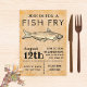 Gå med oss för FISH FRY! Infoga datum och information. Vintage papper för bakgrundsfiske och blåkattfisk hand plockade av konstnären ©Tina Hesskew of Fishing Hunting Life.