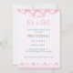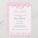 Den beundransvärda babyduschinbjudan har hoppat i knippen på rosan och en mjuk rosa och vit strimlad bakgrund. Så sött!