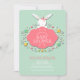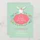En beundransvärd babyduschinbjudan med en vit bunny som håller en dekorativ panel med din händelserubrik omgiven av vita blommor. <br/>()<br/>() Kortet är enkelt att anpassa med din ordalydelse, ditt teckensnitt, ditt teckensnitt, färg och ditt val av sex papprare typer.<br/>() Inte exakt vad du tittar för? Alla våra produkter kan vara designad anpassningsbar för att uppfylla dina behov utan extra-avgifter.<br/>() Kontakta oss helt enkelt på askpixieprints@aol.com. a) Samordningsprodukter: