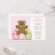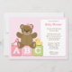 Den här söta inbjudan till Babyskor innehåller en nalle med en rosa och en gummiducky och en rattle sitta ovanpå ABC-block. Denna moderna och roligt barnduschinbjudan är perfekt för alla mamma.