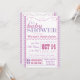 Lila och Rosa Flickbarnskussinbjudan med ett sött modernt utseende. Allmän design som fungerar med vilket duschtema som helst! Det kan också vara bra för kristna eller katolska babyskor med en bibelvers på baksidan!
