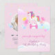 Starta ditt barns magiska dag med en drömmande enhörning som flyger genom moln och hjärtballonger - perfekt för ett speciellt födelsedagsfirande. (AI-genererad teckning)