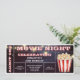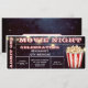 Vi presenterar dig för en spektakulär filmnattsfest! Den här fantastiska inbjudan liknar en klassisk film biljett, vackert förankrad med en underbar låda av popcorn riktad mot en stjärnnattbakgrund. Anpassa detaljerna så att det här blir en unik och oförglömlig upplevelse för din lilla vän och deras vänner!