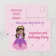 Detta vackra rosa födelsedagsinbjudan för prinsessor har ett vackert spansktalande litet flicka som bär en vacker rosa balklänning. Personifiera denna söta barnkalasinbjudan med ditt barns namn i vackert lila och skriv dina detaljer på baksidan.