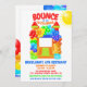 Denna inbjudan till födelsedagsfest med hoppborg är perfekt för alla som firar med en hoppande fest! Ballongerna och hoppborgsdesignen har en mängd primärfärger och är perfekt för både pojkar och flickor! Låt dina gäster hoppa över för en riktigt rolig stund!