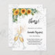 En modern, snyggt och glamorös inbjudan till 21:a (eller vilken vuxen som helst). En vit bakgrund med bubblor, ett par blommor, glas, solblommor och eukalyptus grey. Namn är skrivet med ett modernt handskript i stil. Anpassa och lägg till information om party. 1 lakan = 1 inbjudan tryckt kant till kant.