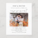 Det finns två pappra alternativ att välja mellan för detta storlek (4,5 x 5,6 tum) i budgetintervallet. För denna produkt skulle jag vilja rekommendera halvglans som är ett 110 g/m kort lagrar, liknande tjocklek som ett vykort. Sateringsalternativet är en mycket tunnare papper på 80 g/m. Standardvärdet är semiglans. OBSERVERA ATT DET FINNS EN PER lakan. Förlovningsfest för budgetminimalistiskt skriptfoto. Lägg till ditt favoritfoto och anpassa det med din information. Förlovningen finns i ett handskrivet stil-skript i snyggten.
