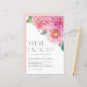 Inbjudan gäster till ditt evenemang med inbjudan till anpassadets förlovningsfest. Den har en vattenfärgad blommigt av rosa dahlia-blommor. Anpassa genom att lägga till information. Denna inbjudan till förlovningsfest i blommigt är perfekt för vår och trädgårdsbröllop.