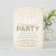 Den här fina inbjudan från Förlovningsfesten The Spoted Olive™ har en söt mjuk guld-bakgrund med en bild av glatt gems-direktuppspelning från överkanten och ord "Förlovningsfest" med stilistigt typuppsättning som innehåller ord "Party" fylld med en bild av guld glitter. OBSERVERA: DEN HÄR KONSTRUKTIONEN INNEHÅLLER ENDAST EN SKRIVEN BILD AV GLITTER; DET FINNS INGEN FYSISK GLITTER SOM ANVÄNDS ELLER INGÅR I; DET FINNS INGA EMBELLISTER. Copyright 2013-Present | Spoted Olive™ | Alla reserverade Höger